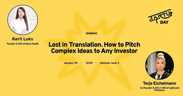 The Dealum seminar at sTARTUp Day, “Lost in Translation. How to Pitch Complex Ideas to Any Investor” on 29 January from 14:00 in Seminar room 3, focuses on a reality many founders face: investors often do not immediately understand complex, technical, or specialised ideas, and it is the founder’s responsibility to bridge that gap.
